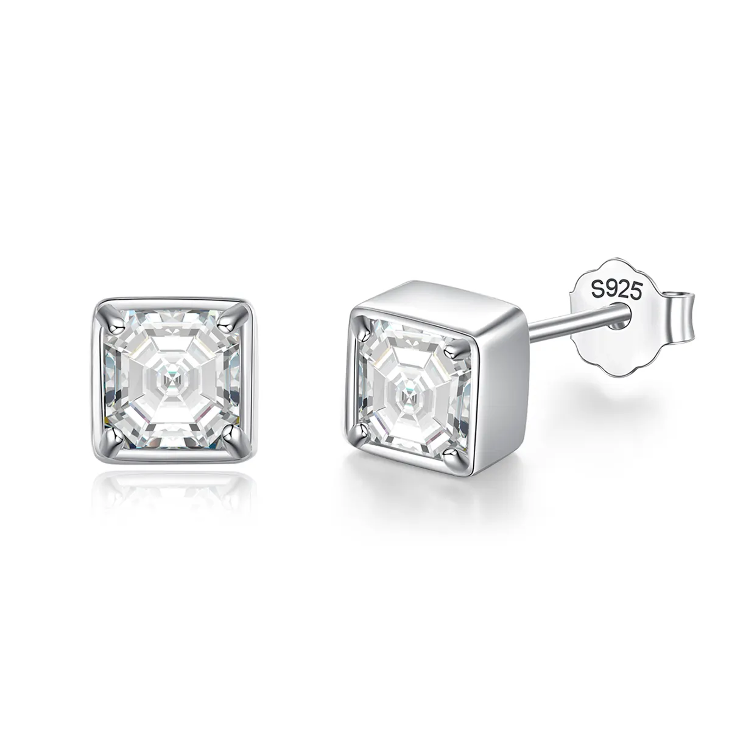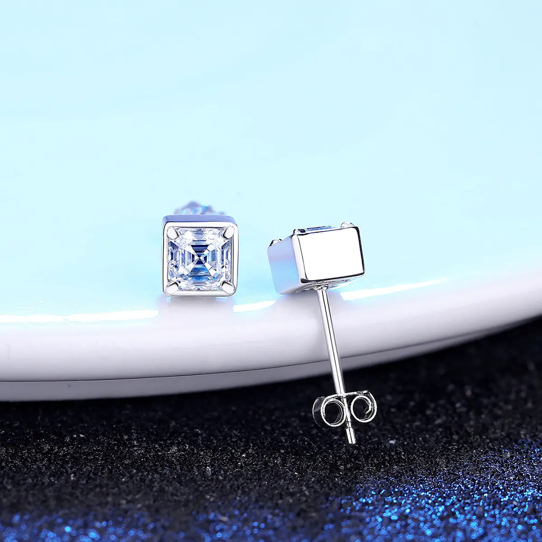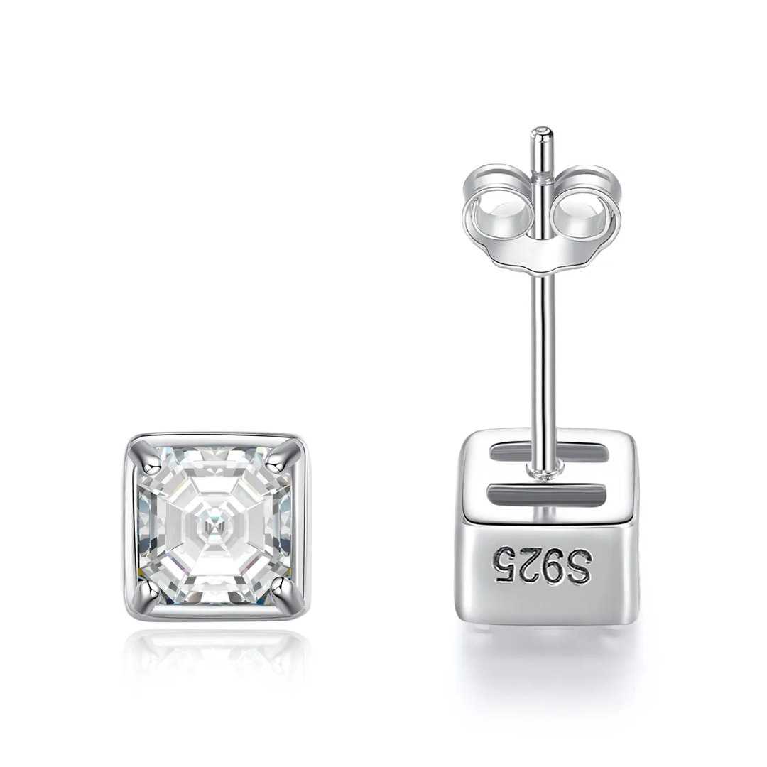Platonic 0.5 ct Radiant Asscher Moissanite Stud Earrings for Men - Single Piece