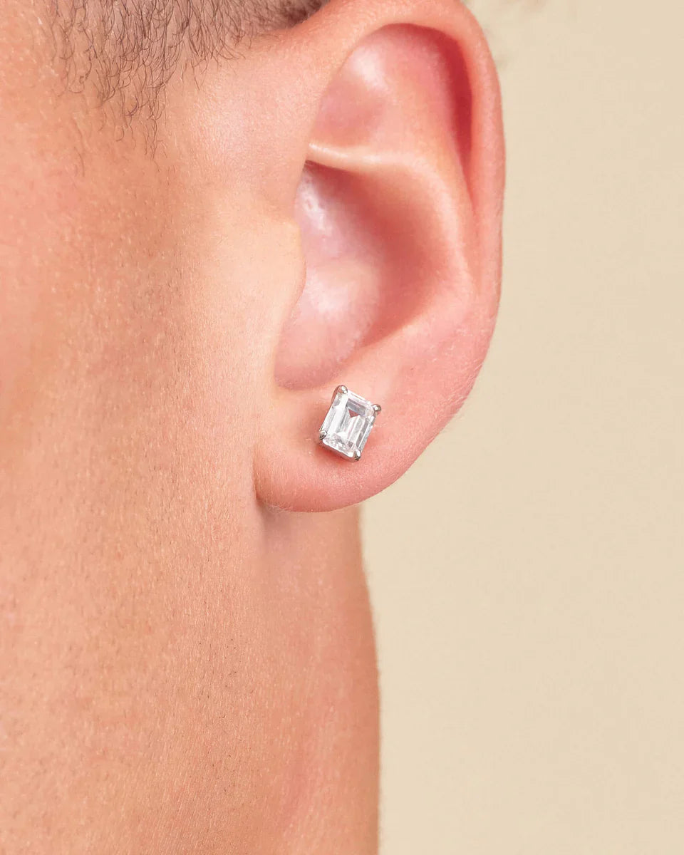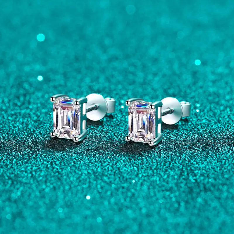 Sleek and sophisticated, these emerald-cut moissanite studs bring a whisper of glamour to any look. Minimalist yet mesmerizing, they’re the perfect touch of understated sparkle for your everyday elegance. Small in size, big on style!