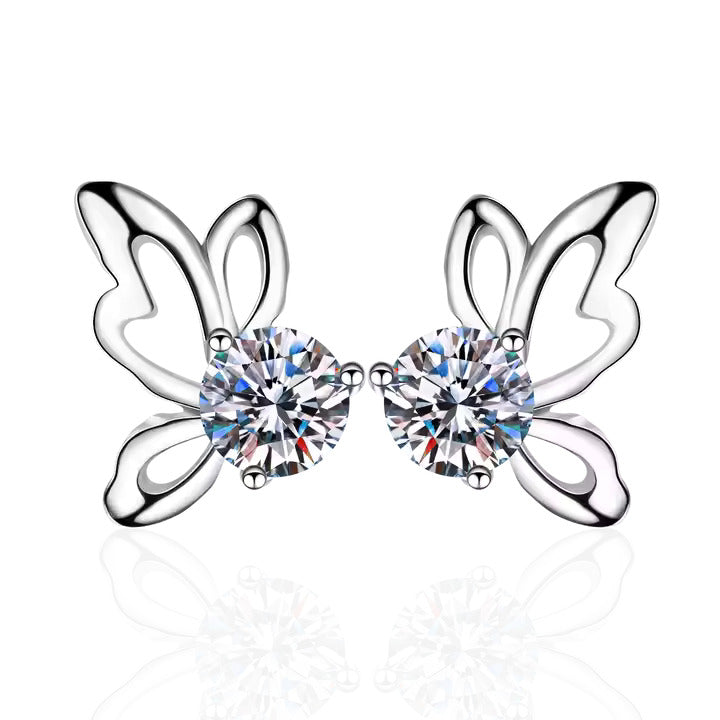 Discover the elegance of Butterfly Stud Earrings, featuring GRA-certified moissanite gems. These modern stud earrings add celestial sparkle to any look, perfect for elevating everyday style or shining on special occasions.