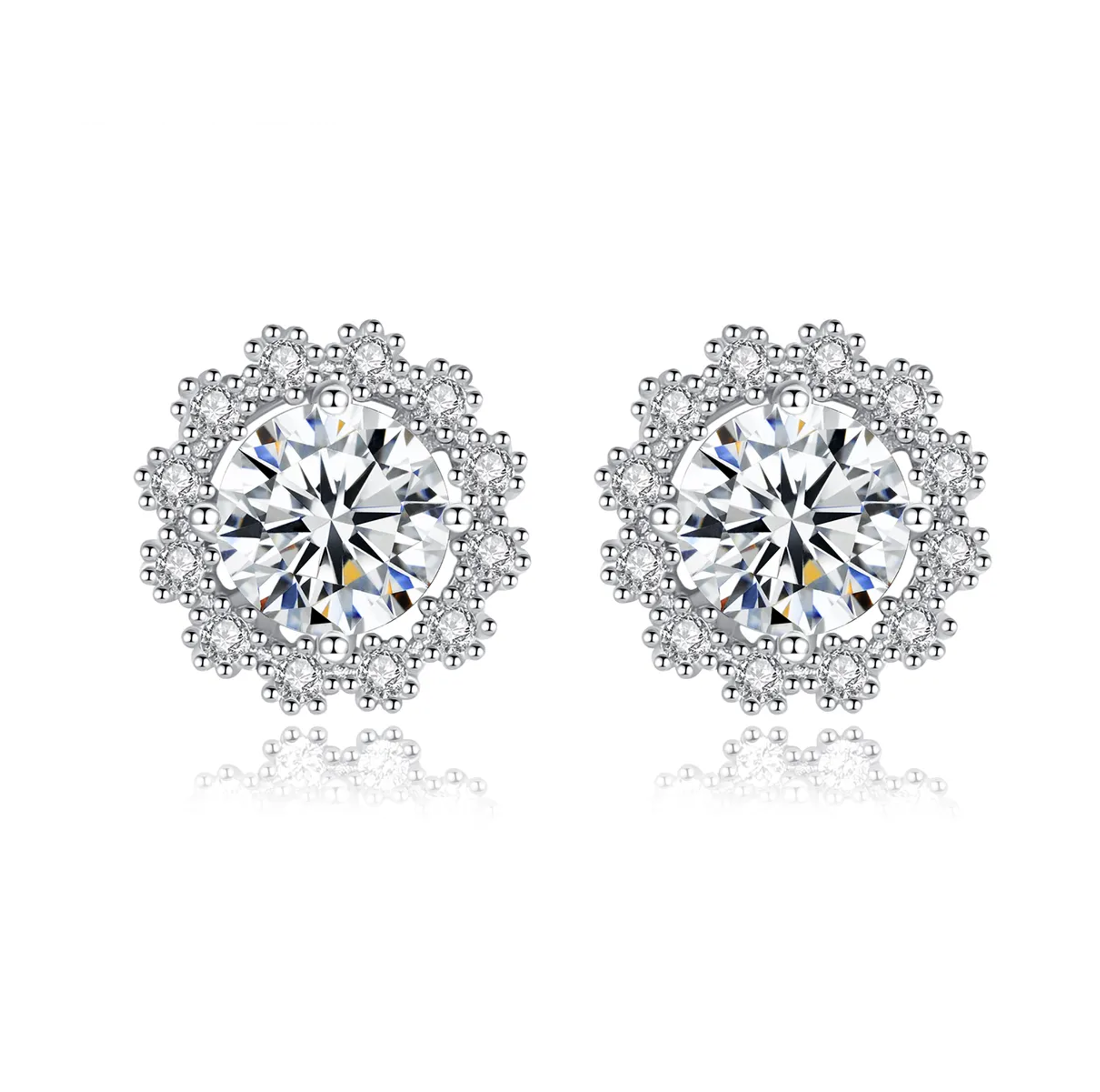 Embrace the beauty of winter with these intricate moissanite earrings, each stone framed by a delicate halo of shimmer. Like snowflakes that sparkle, they add a frosty elegance to any look—no need to wait for winter to shine!