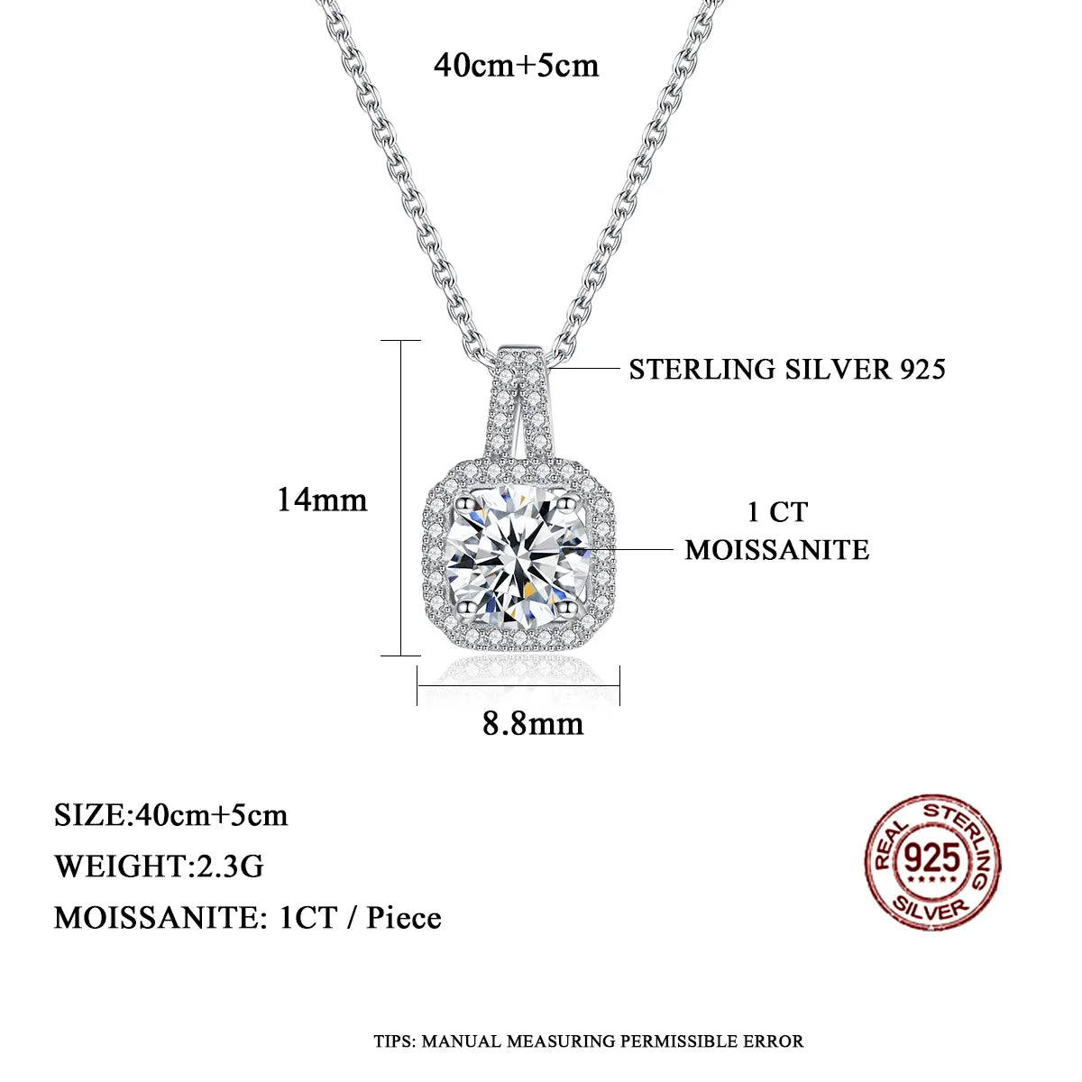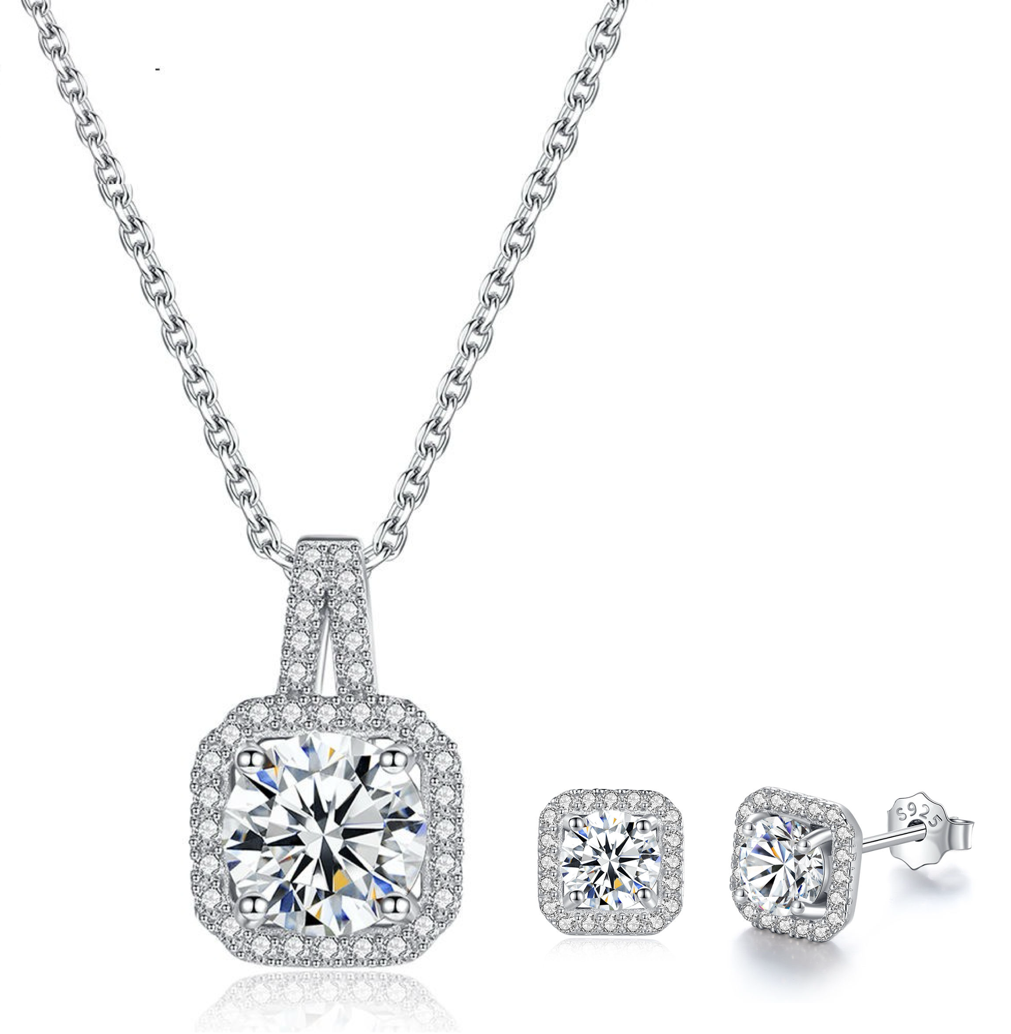Platonic GRA Certified Starlit Glamour Round Cut Silver 1ct Moissanite Pendant Set with 1ct Earrings