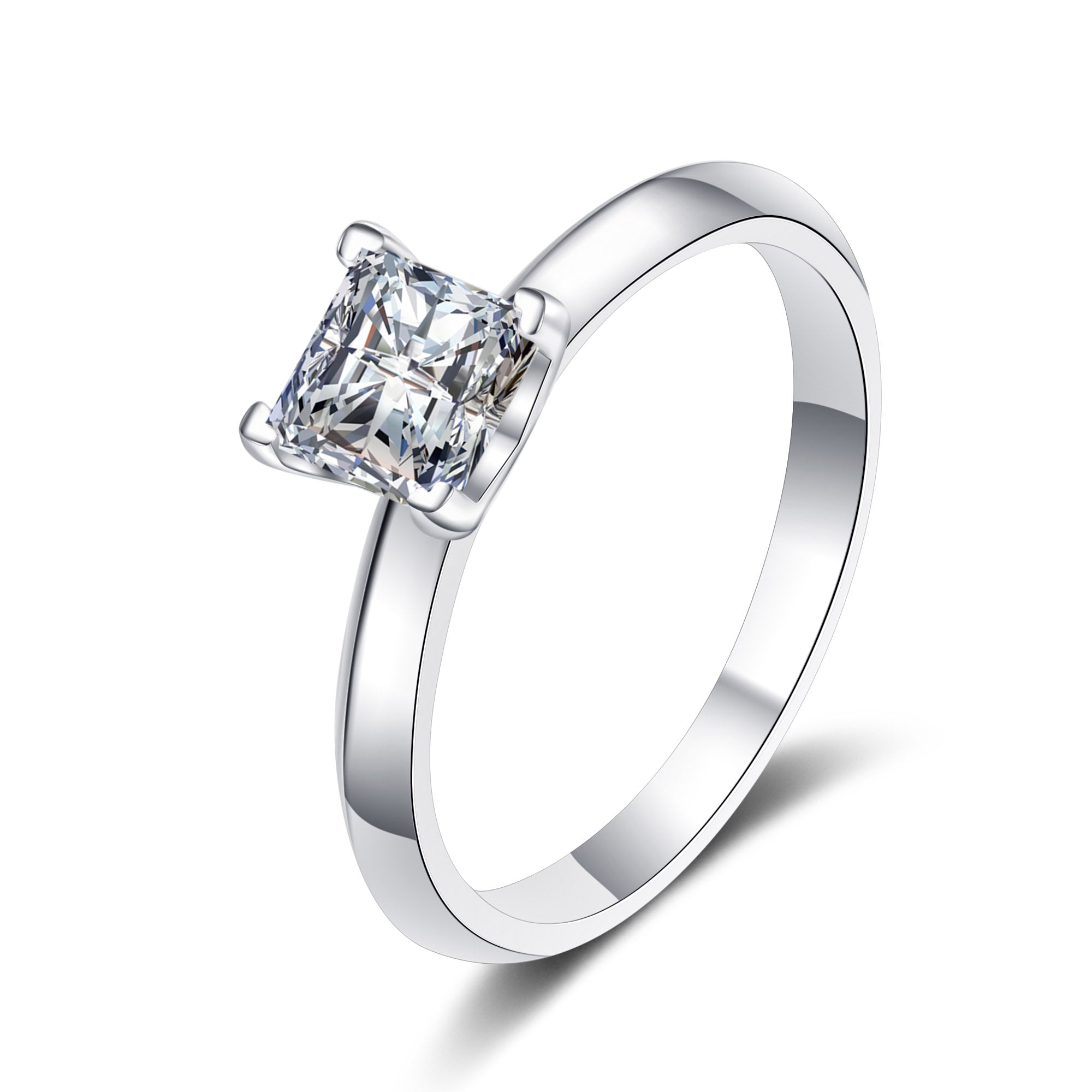 Platonic Rosalind Princess Cut Solitaire Moissanite Ring in Sterling Silver with Platinum Coating