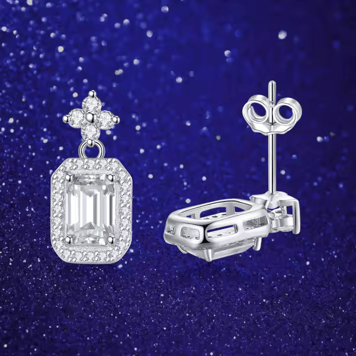 These stunning emerald moissanite stud earrings feature brilliant GRA-certified stones set in sterling silver, delivering diamond-like sparkle with an eco-friendly touch. Perfect for adding timeless elegance and radiance to any look.