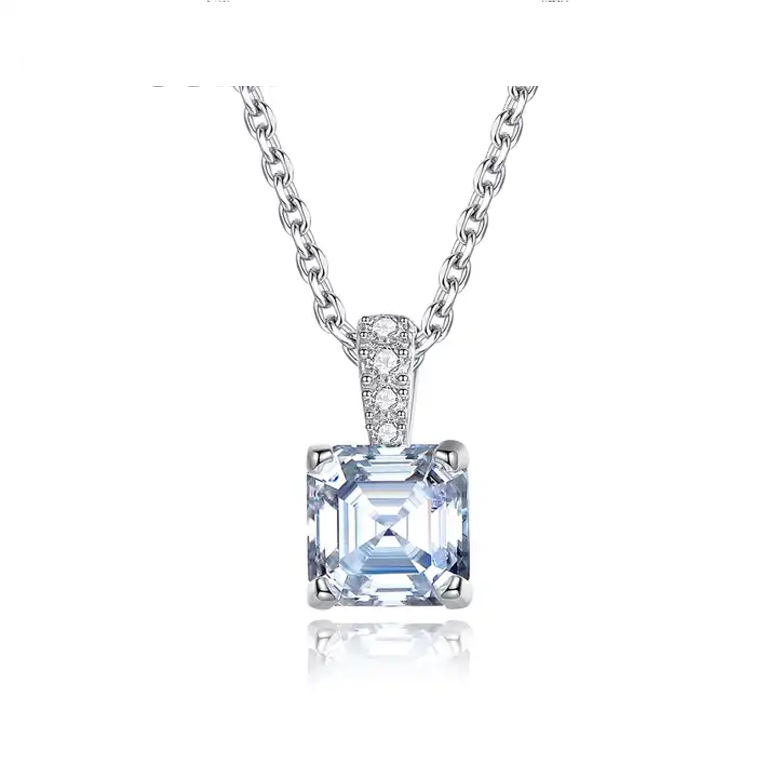 Platonic 1.2 ct Radiant Royale Asscher Cut Silver Moissanite Pendant with Free Chain; GRA Certified